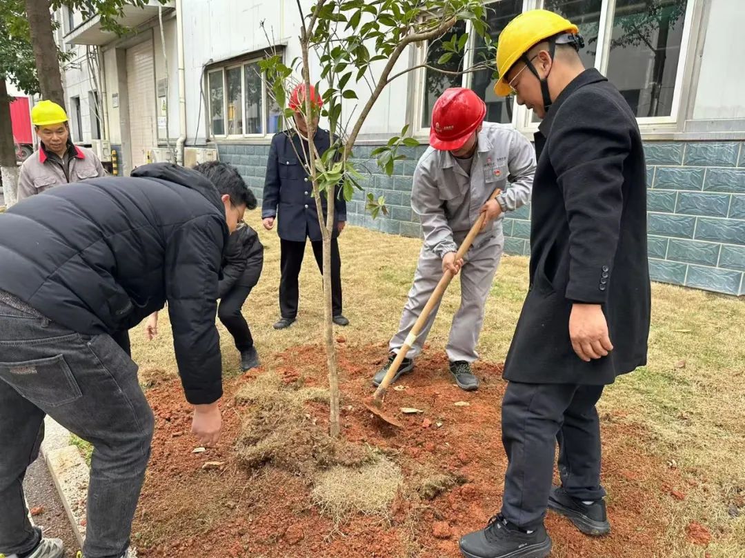 植樹現(xiàn)場,大家干勁十足,揮鍬鏟土、扶苗填坑、培土壓實、提水澆灌.....分工明確、配合默契,現(xiàn)場一片熱火朝天的景象,大家盡情享受著朝氣蓬勃的春意,用自己的雙手和汗水為公司注入新的生機與活力。